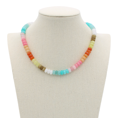 Multicolor rondelle shape jade beads in fun, colorful necklace. Colors are randomly strung so each one is unique in color pattern. Approximately 16...