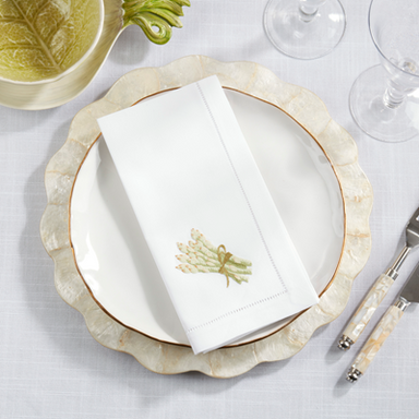 Add a fresh, garden-inspired touch to your table with this embroidered asparagus napkin. Crafted from 100% cotton, it brings charm and classic styl...