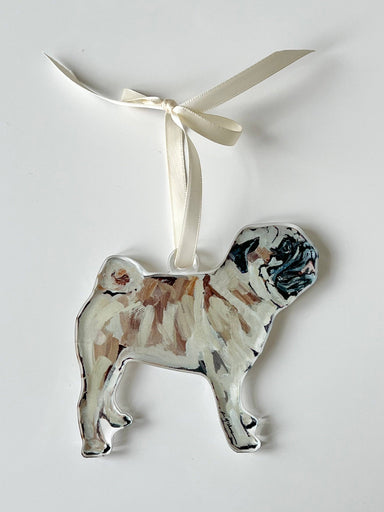 Pug Fawn acrylic ornaments. All Ornaments are between 4-5 X 2.5-3.5" Made in the United States Weight: 3.84 oz (108.86 g)