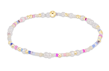 Made with various colors of randomly mixed 2mm seed beads and 2mm 14k gold-filled beads Measures: standard (6.25") Hand beaded on high performanc...