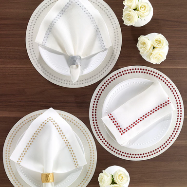 This napkin collection was made to be the perfect match to one of our most popular placemat collections, Pearls. Beautiful off-white napkins with e...
